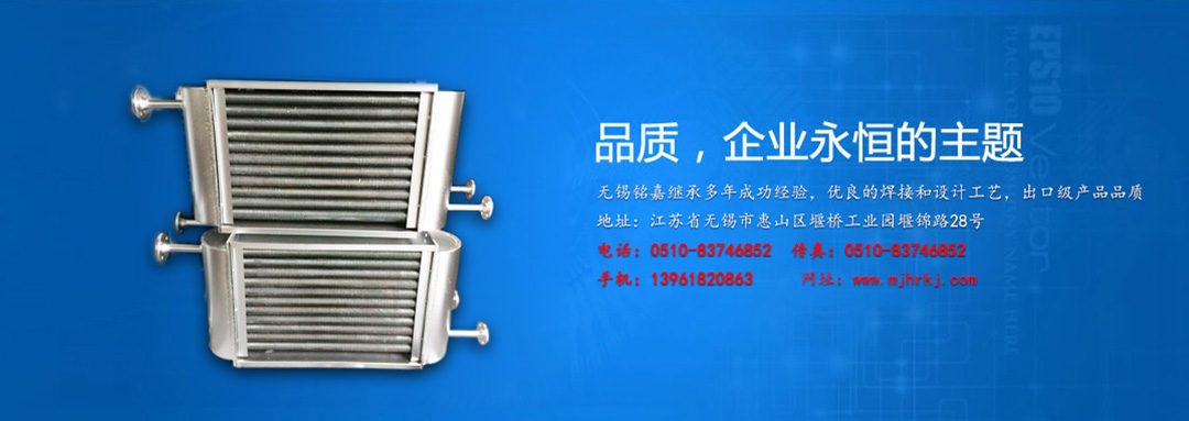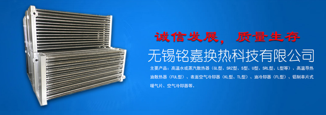 無錫銘嘉換熱科技有限公司是生產散熱器的專業工廠。 產品有:高溫水或蒸汽散熱器、高溫導熱油散熱器、表面空氣冷卻器、油冷卻器鋁制串片式暖氣片空氣冷卻器、翅片管換熱器